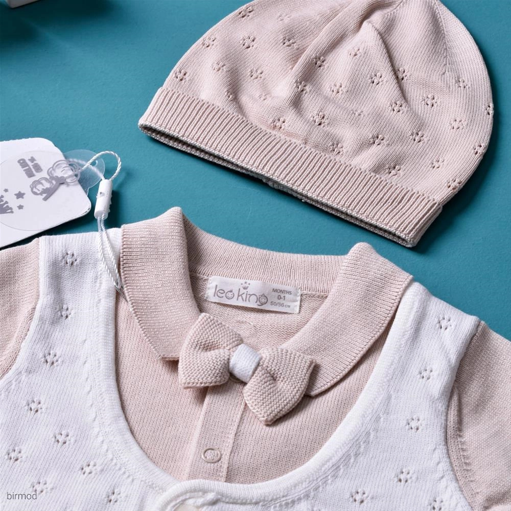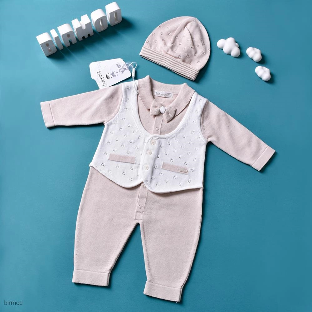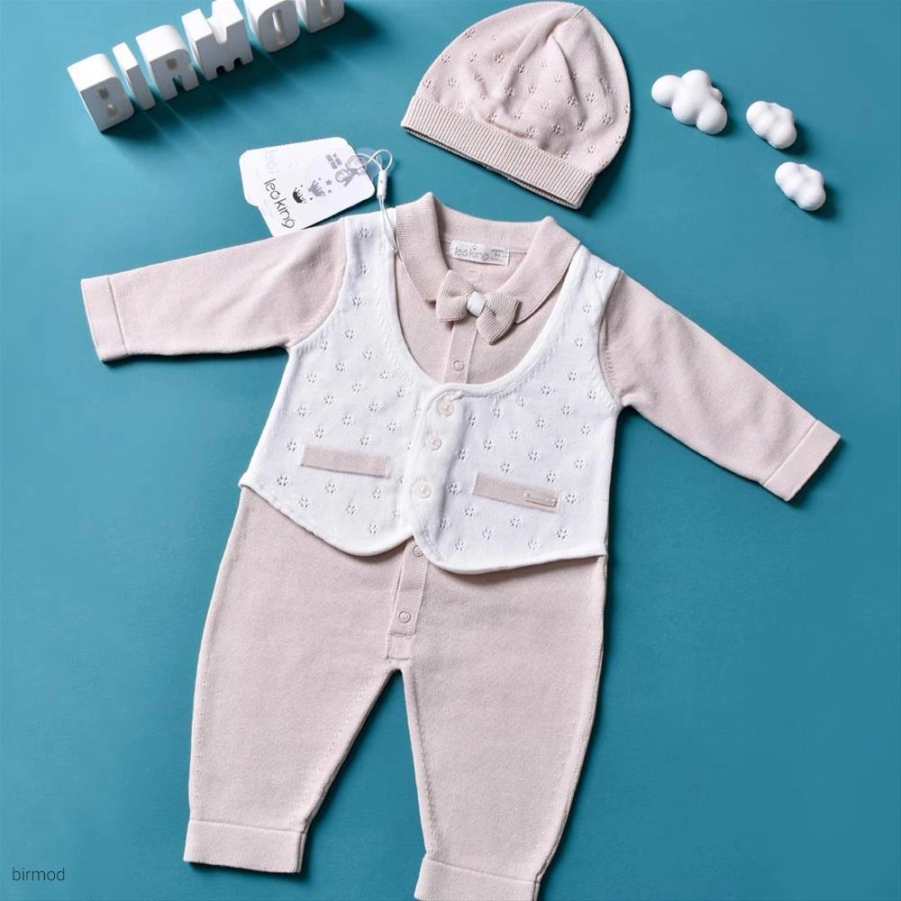 سرهم پسرانه پاپیون دار و کلاه دار کرم پنبه مدل جلیقه اورجینال لئوکینگ ترکیه