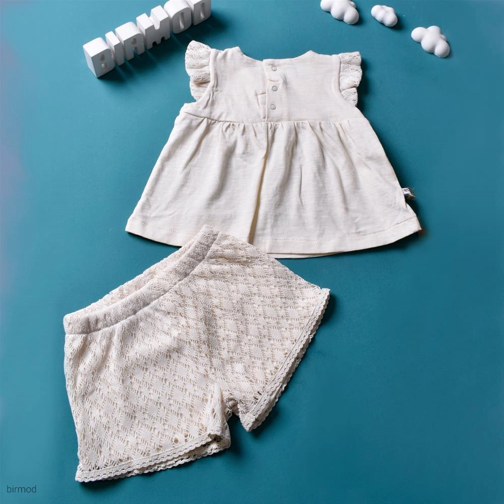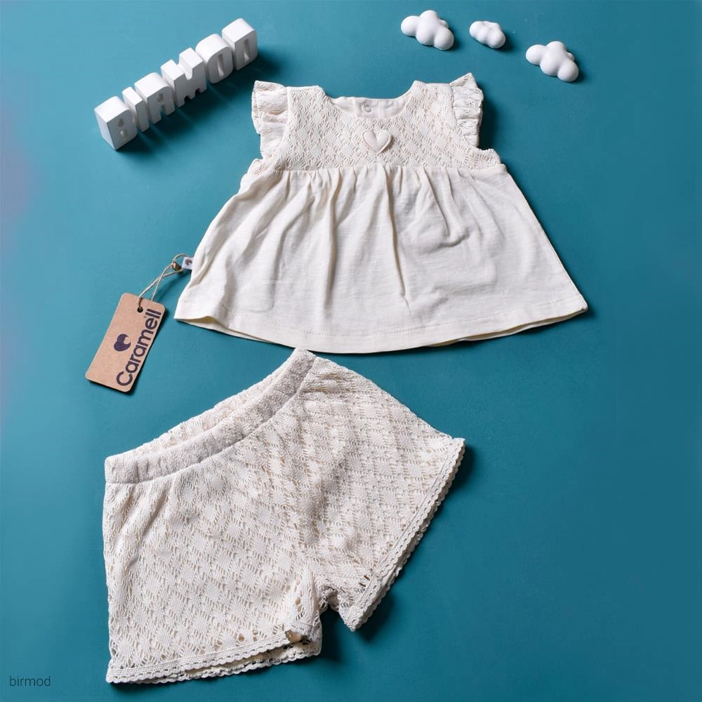 دو تیکه خامه دوزی شرتک و پیراهنی کرم اورجینال کارامل 1780
