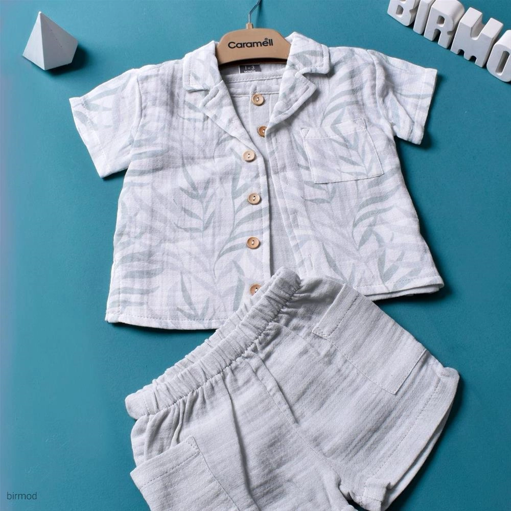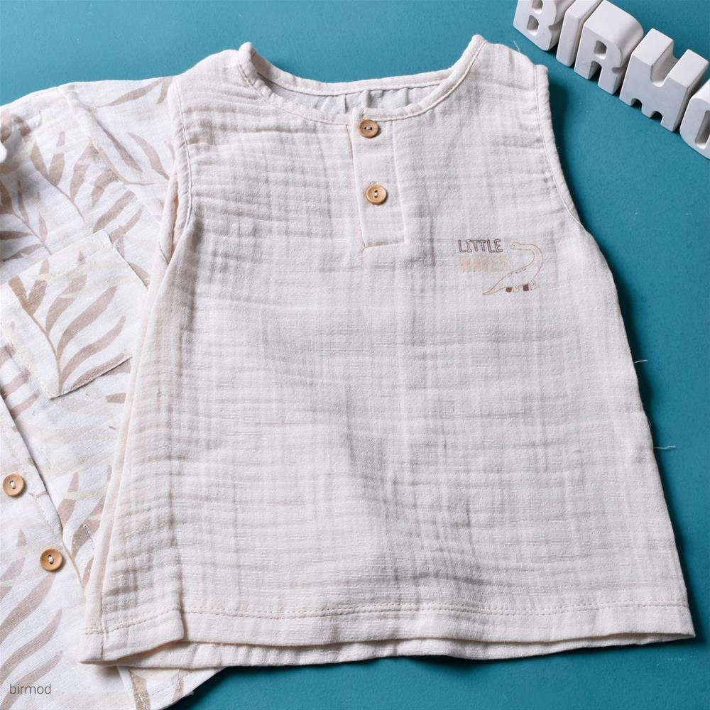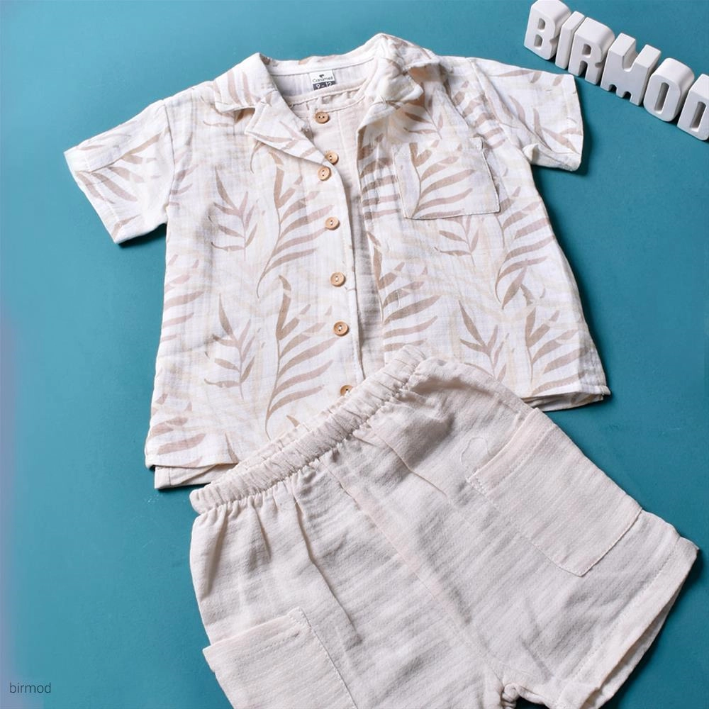 سه تیکه موسلین هاوایی پسرانه اورجینال کارامل ترکیه 1676
