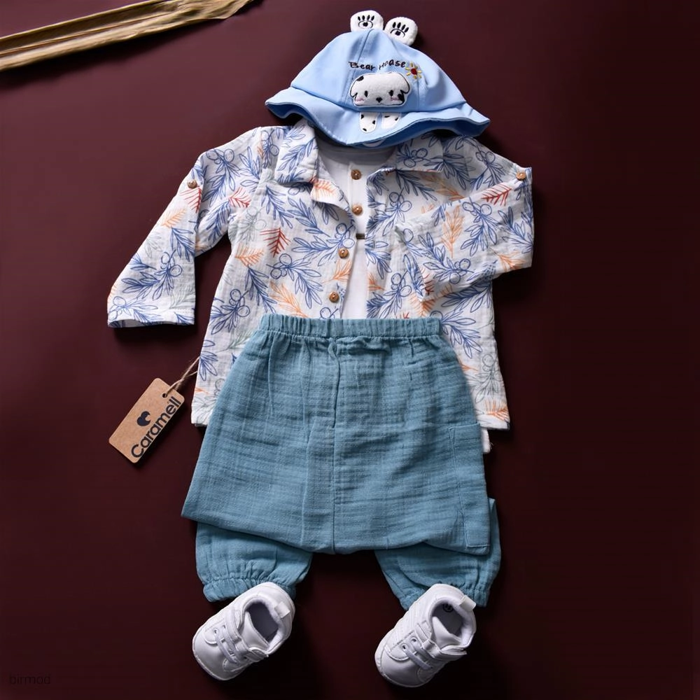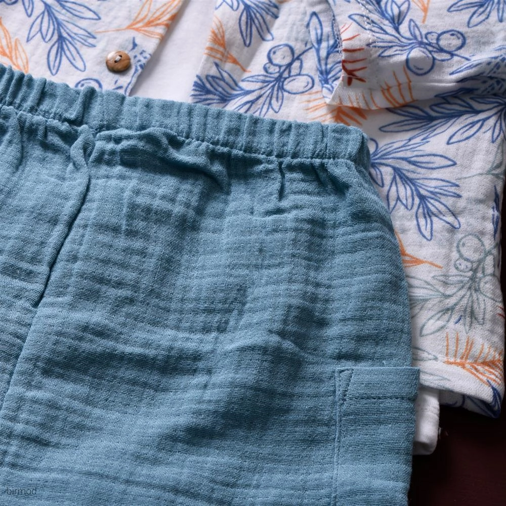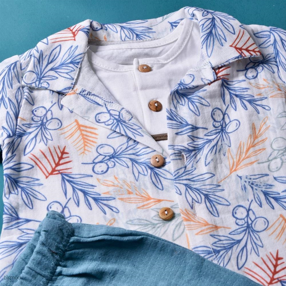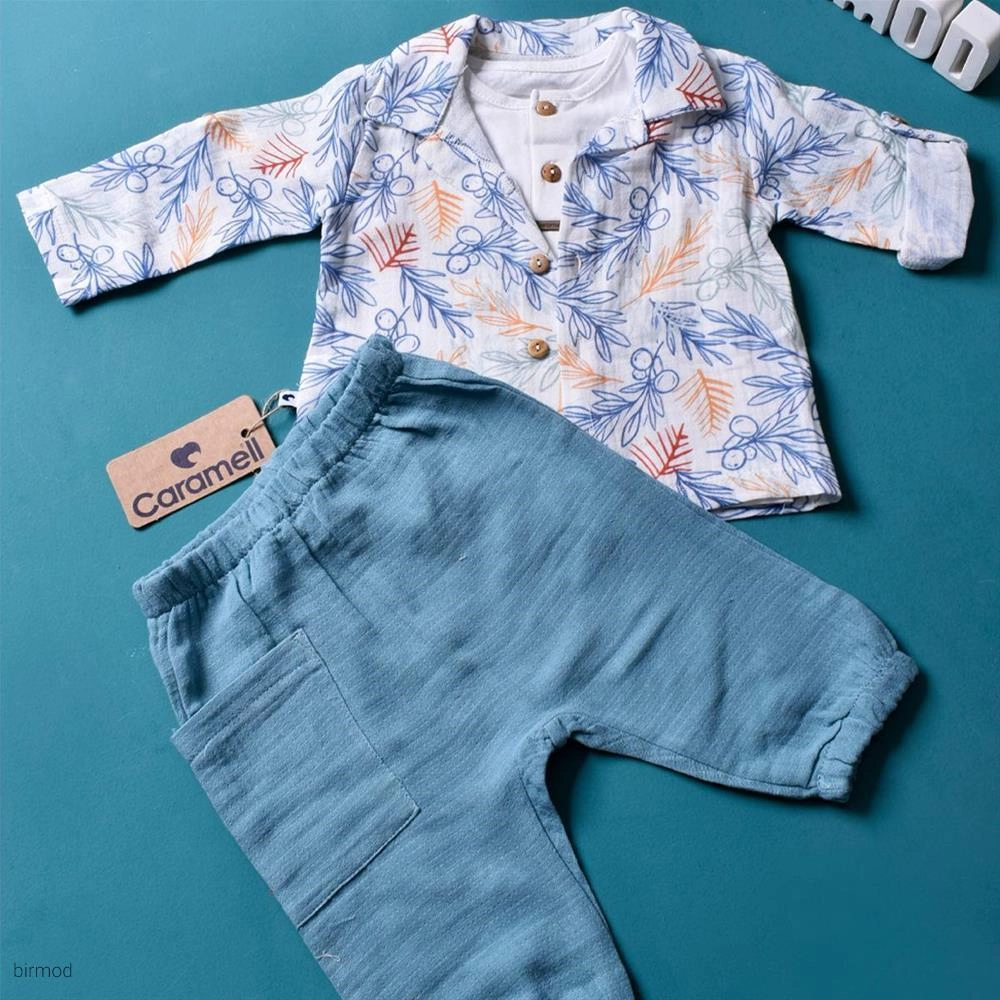 سه تیکه پسرانه موسلین مینت هاوایی اورجینال کارامل ترکیه 1798