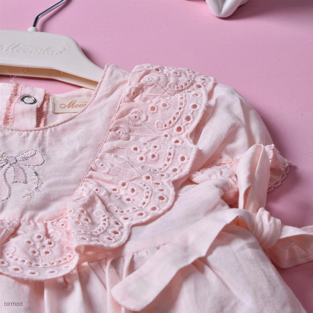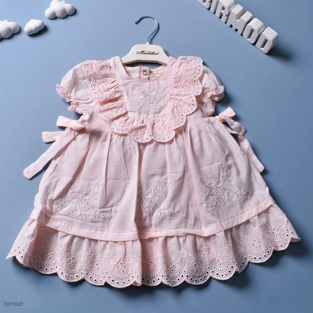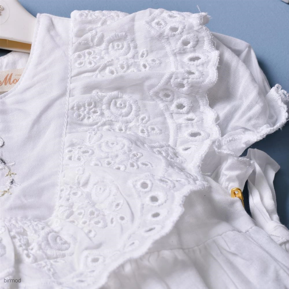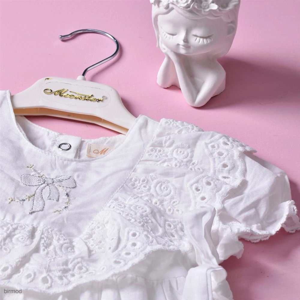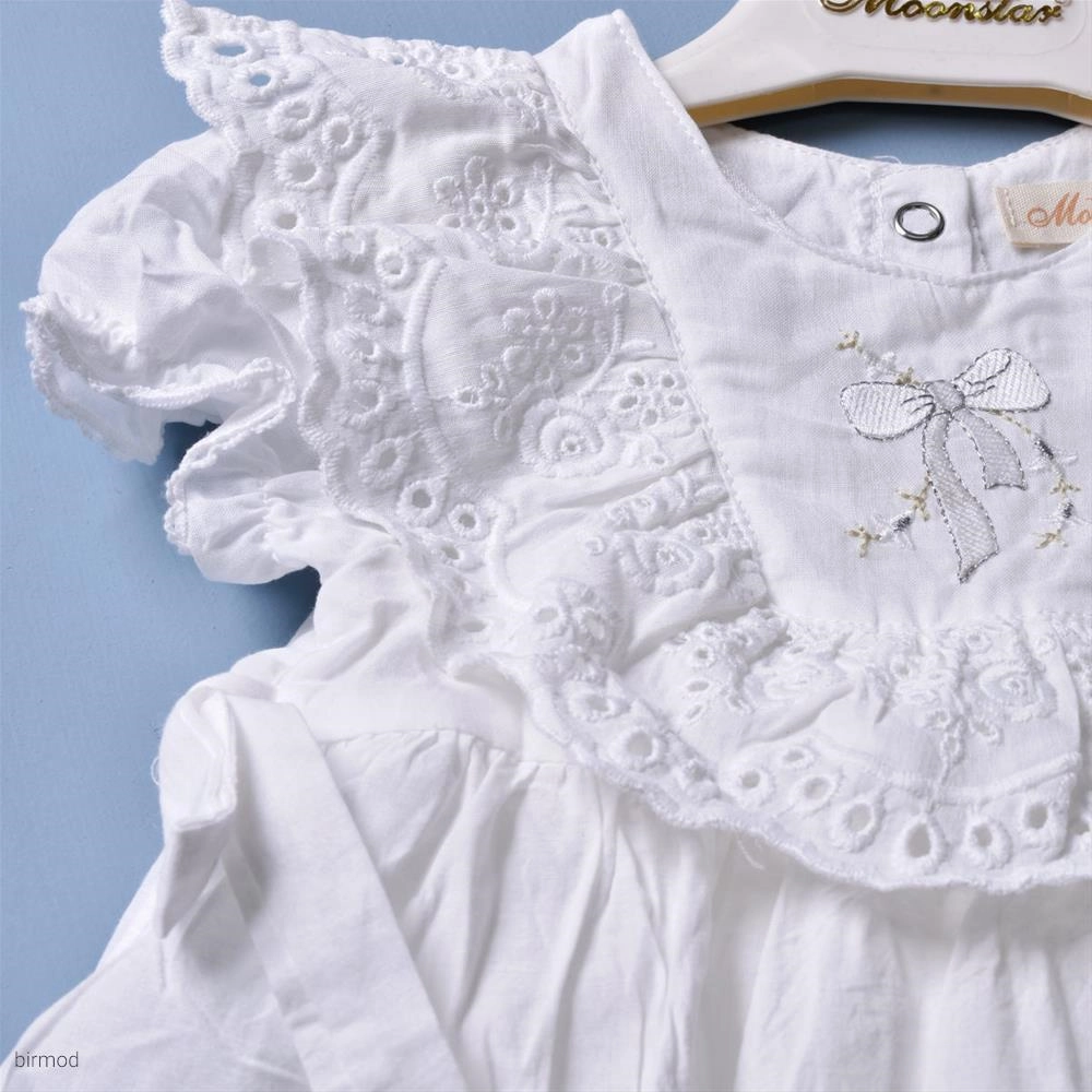 پیراهنی سفید و صورتی خامه دوزی اورجینال ترک مون استار 51172