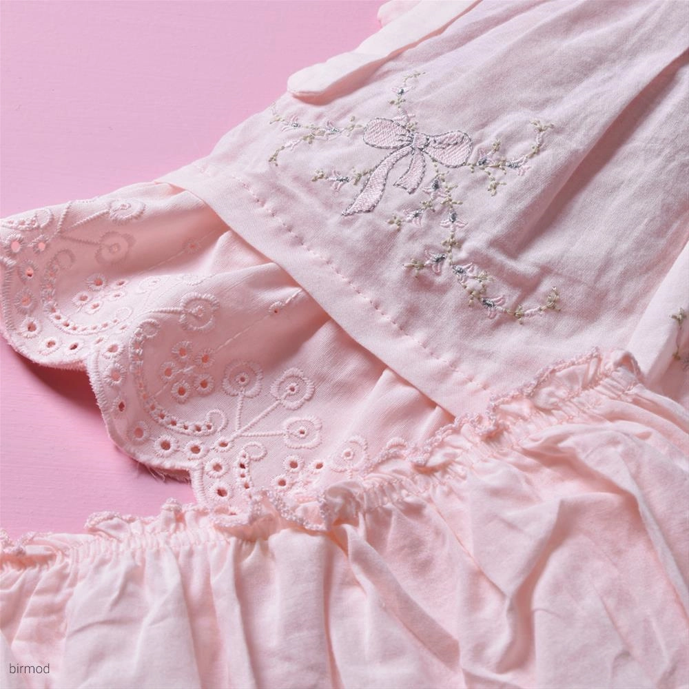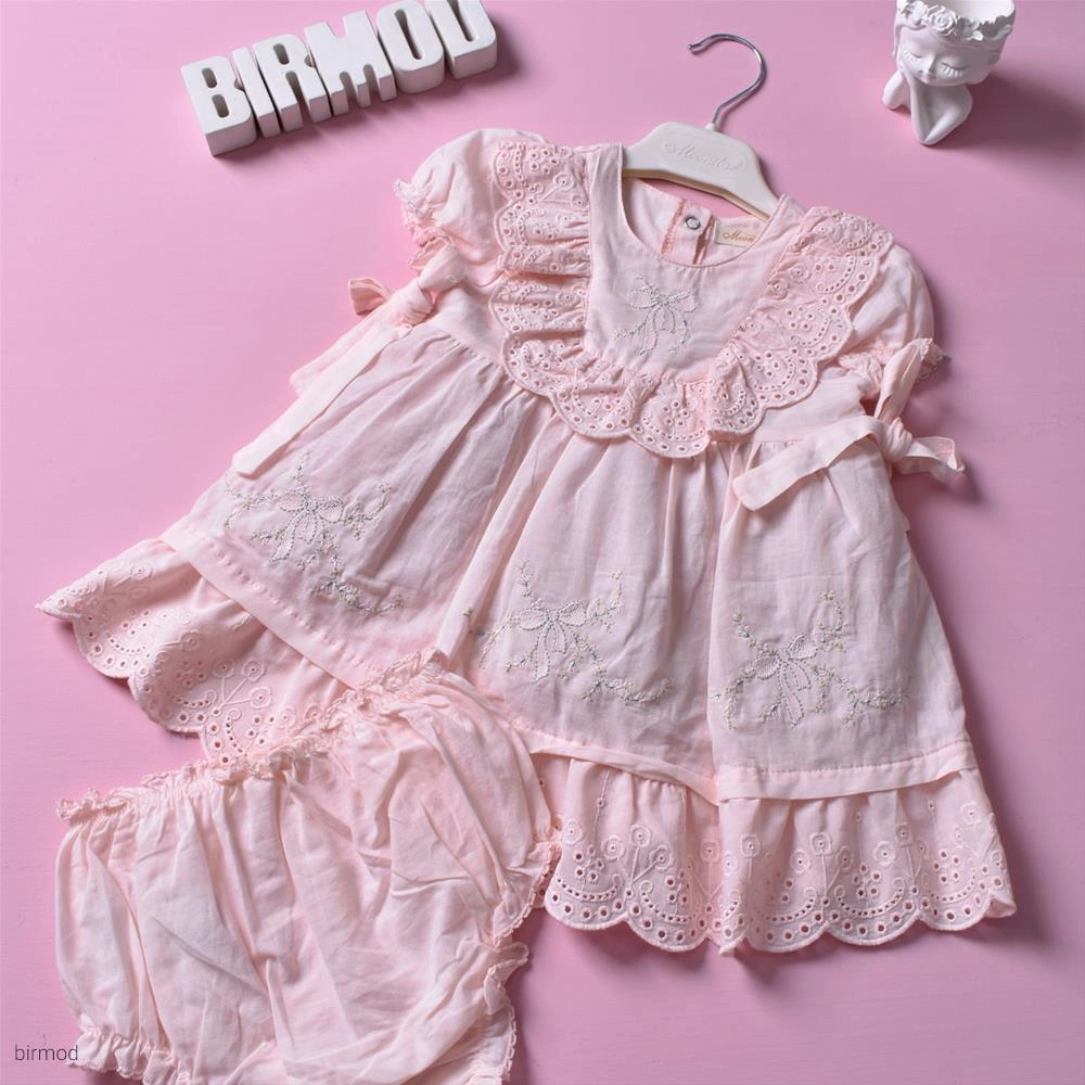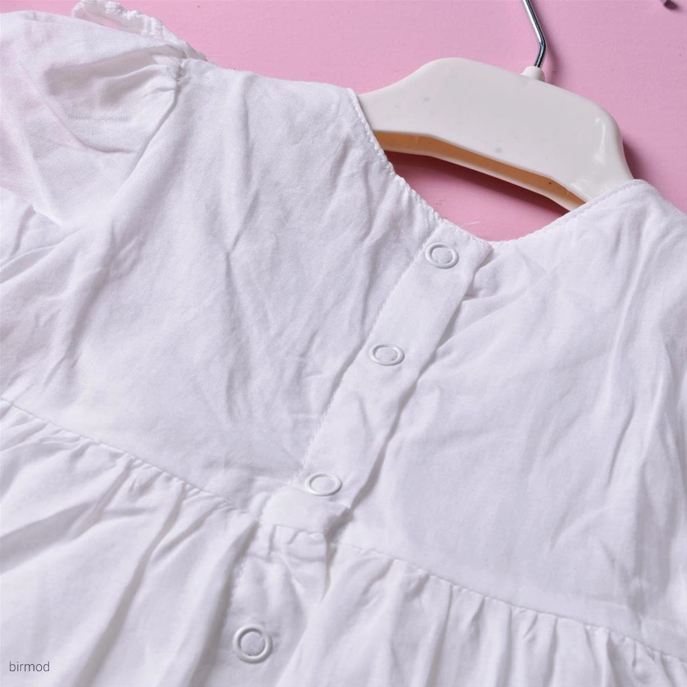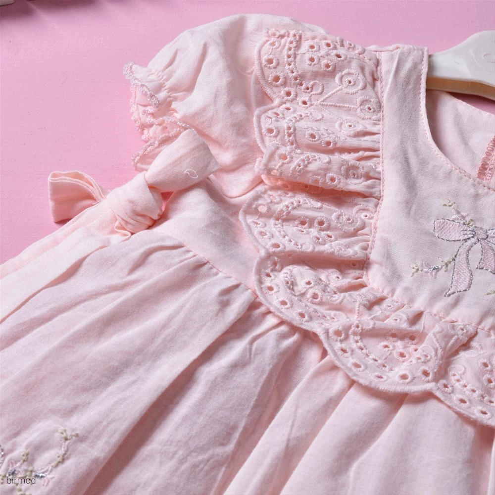 پیراهنی سفید و صورتی خامه دوزی اورجینال ترک مون استار 51172