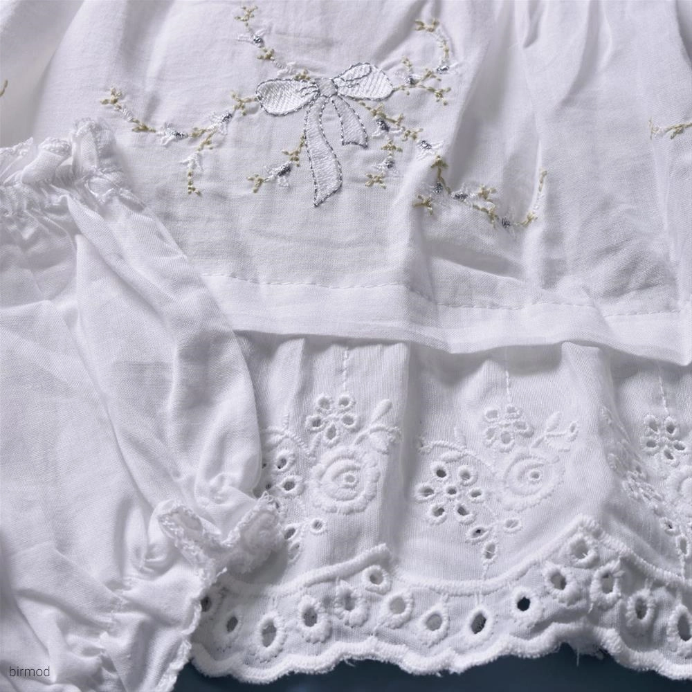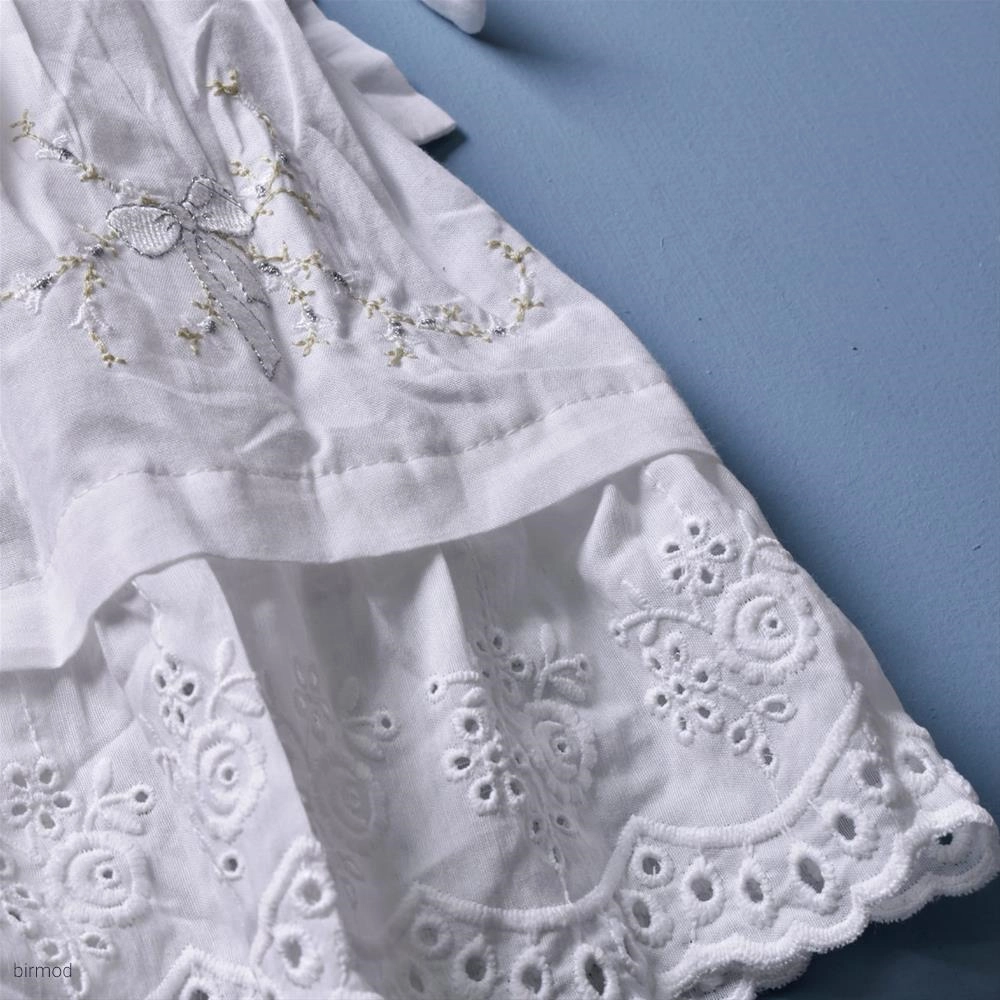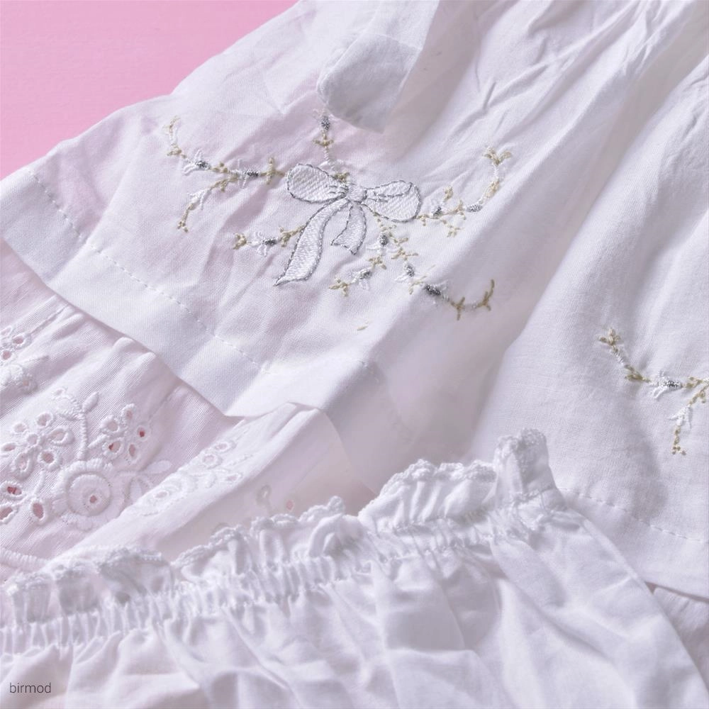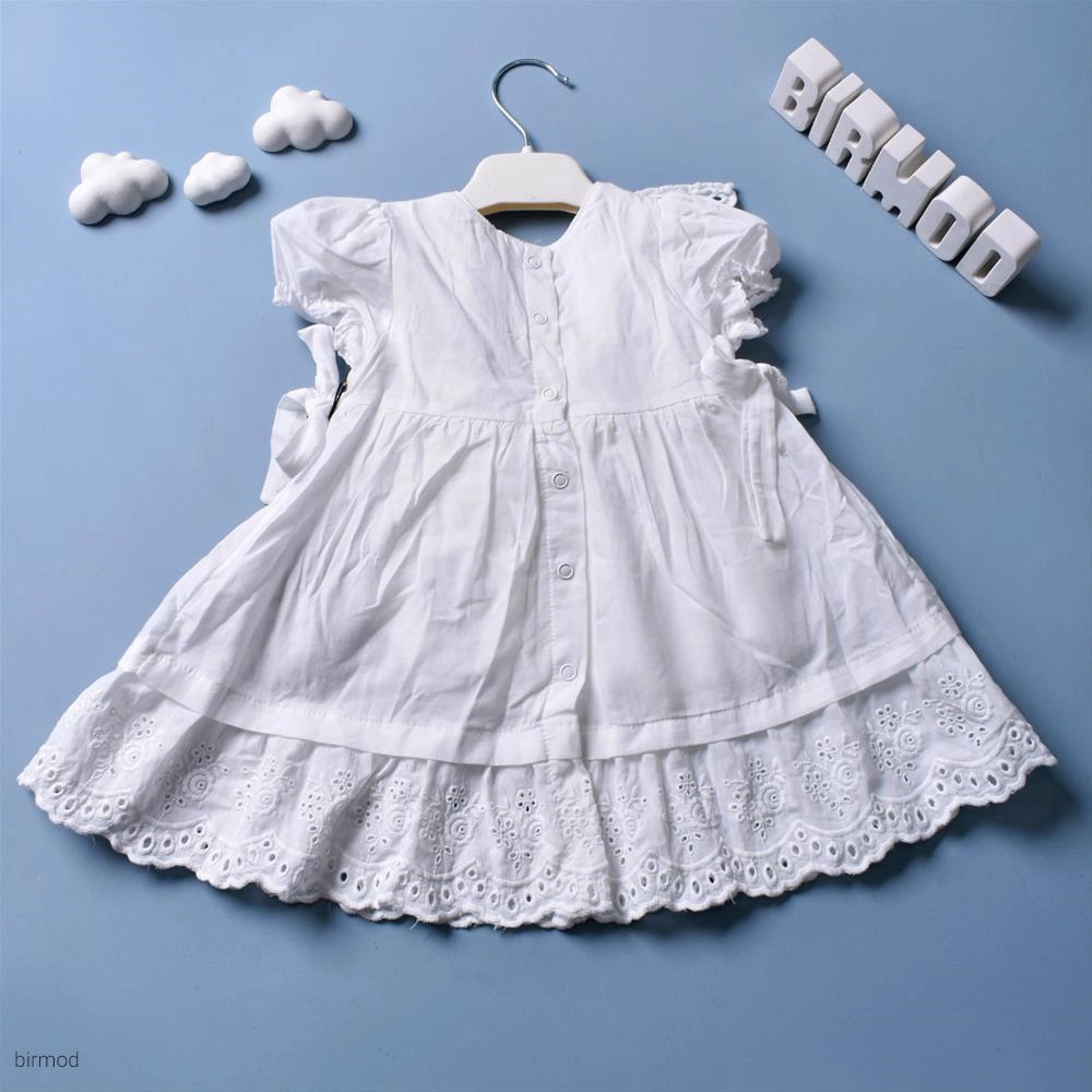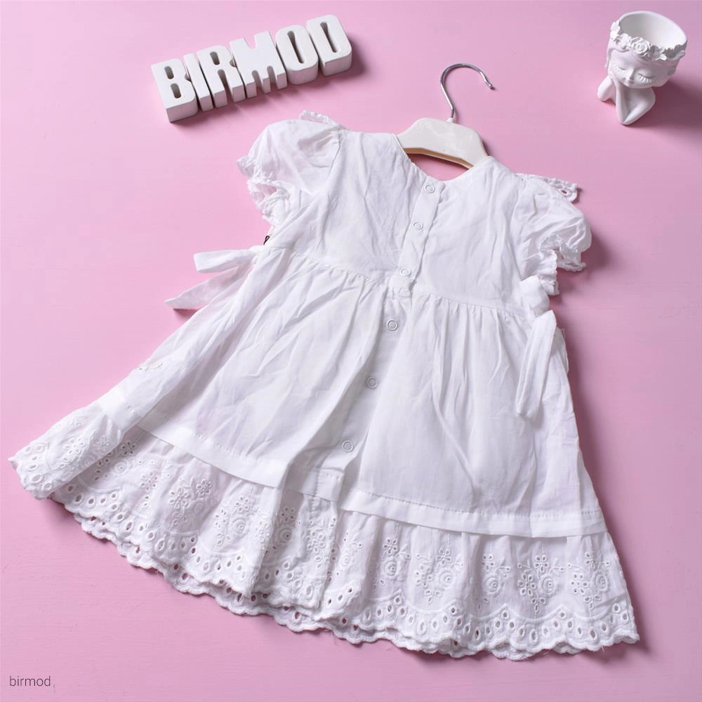 پیراهنی سفید و صورتی خامه دوزی اورجینال ترک مون استار 51172
