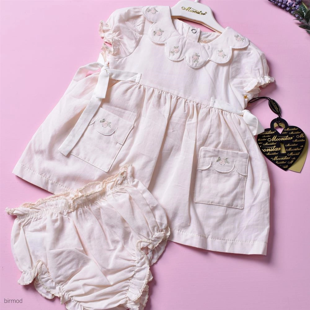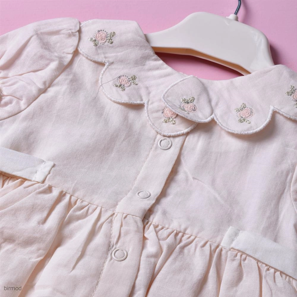 پیراهنی یقه حلالی صورتی و گلبهی نخی اورجینال ترک مون استار 51168