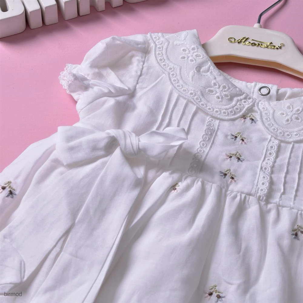 پیراهنی خامه دوزی سفید اورجینال ترک مون استار 51170