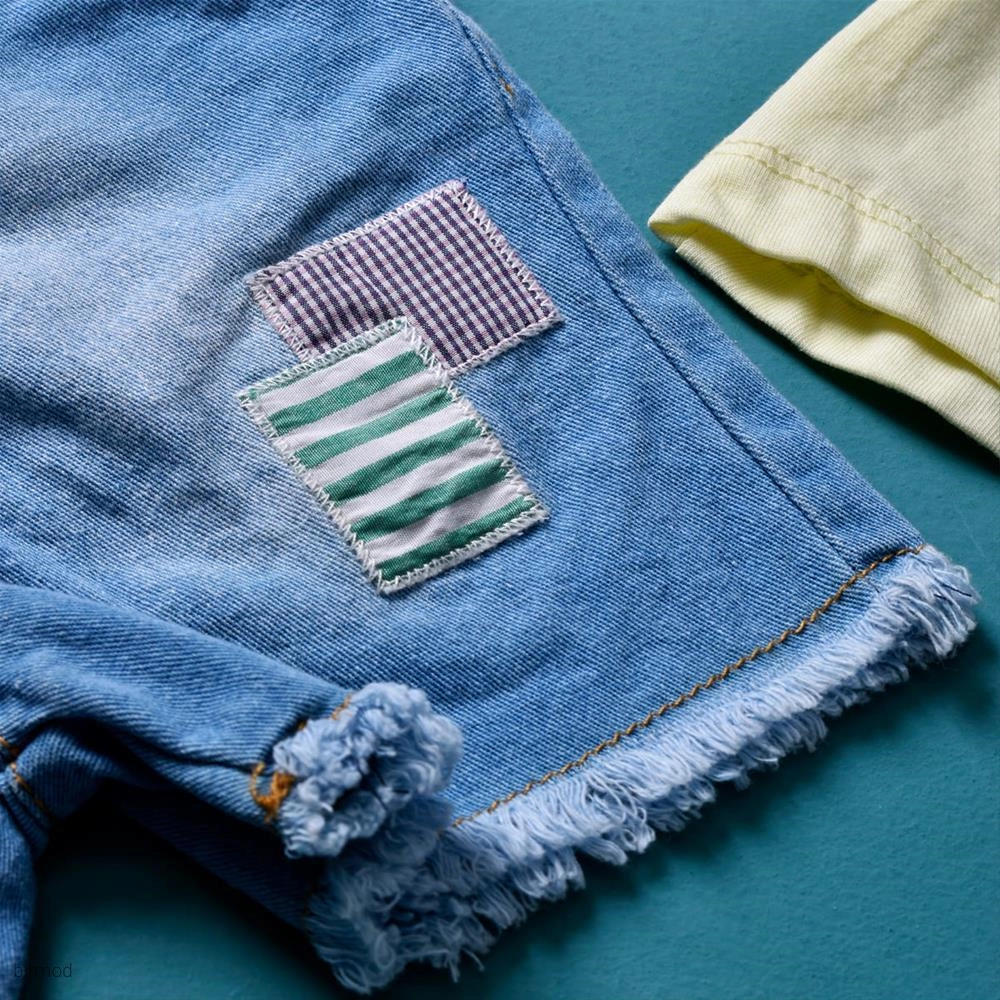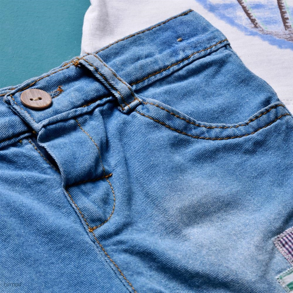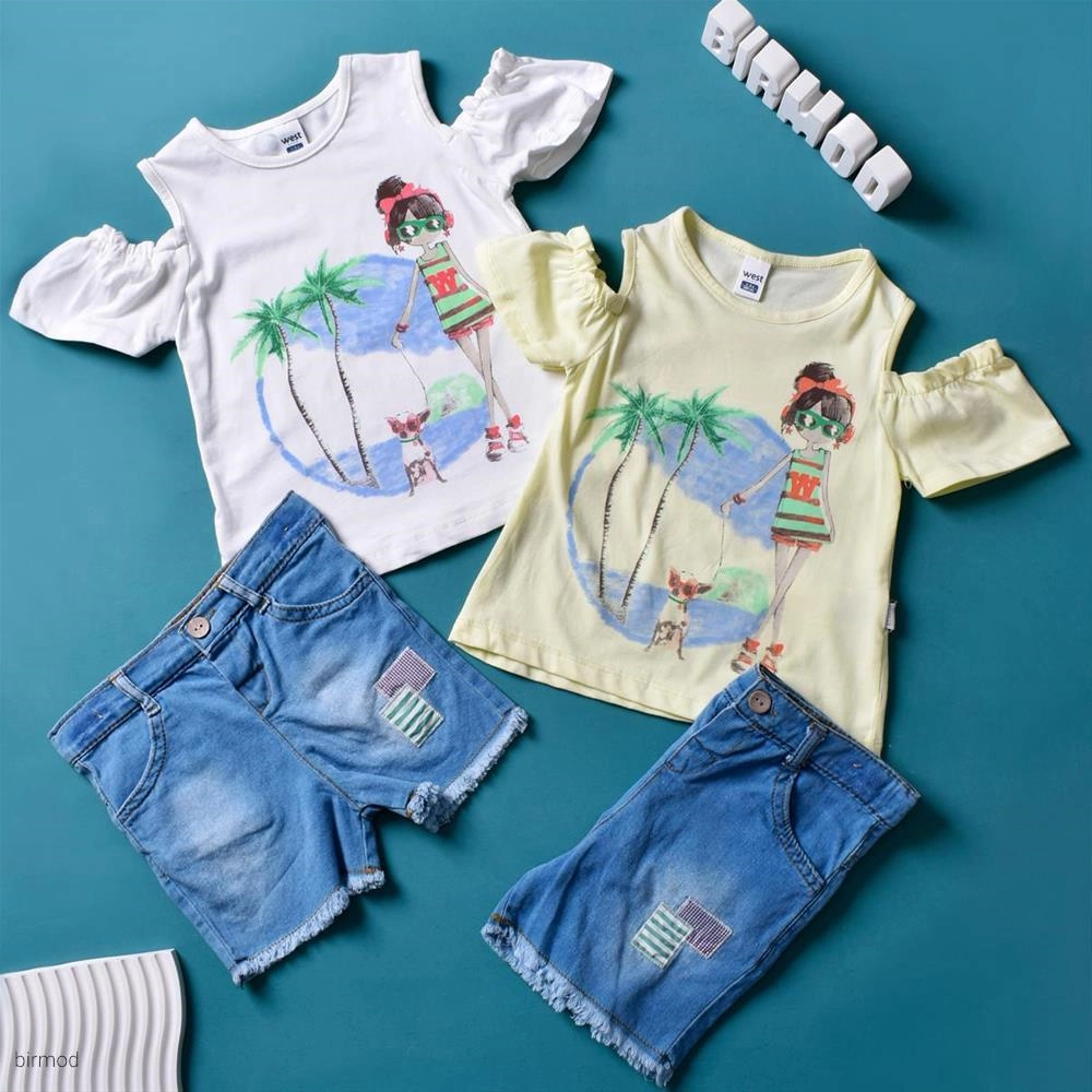 دو تیکه دخترانه تابستانی شرتک جین اورجینال ست کیدز ترکیه 552