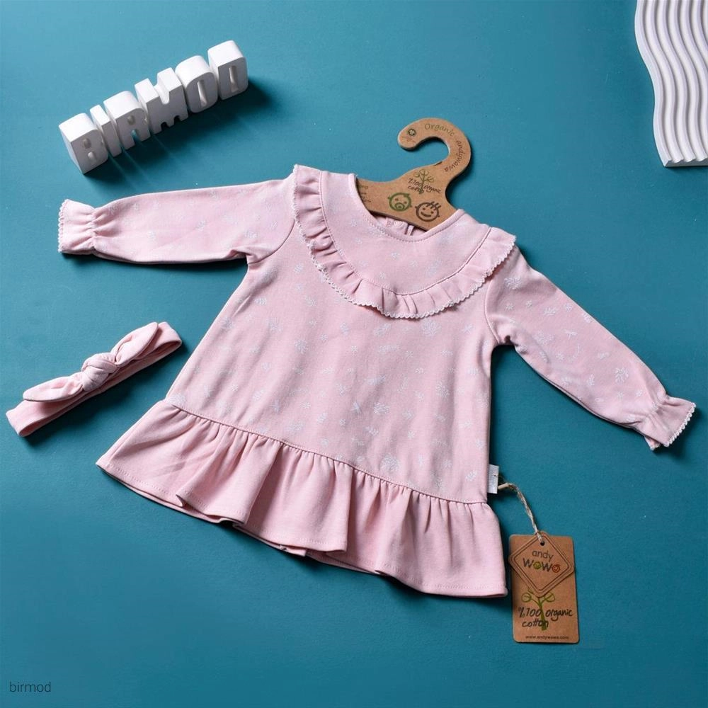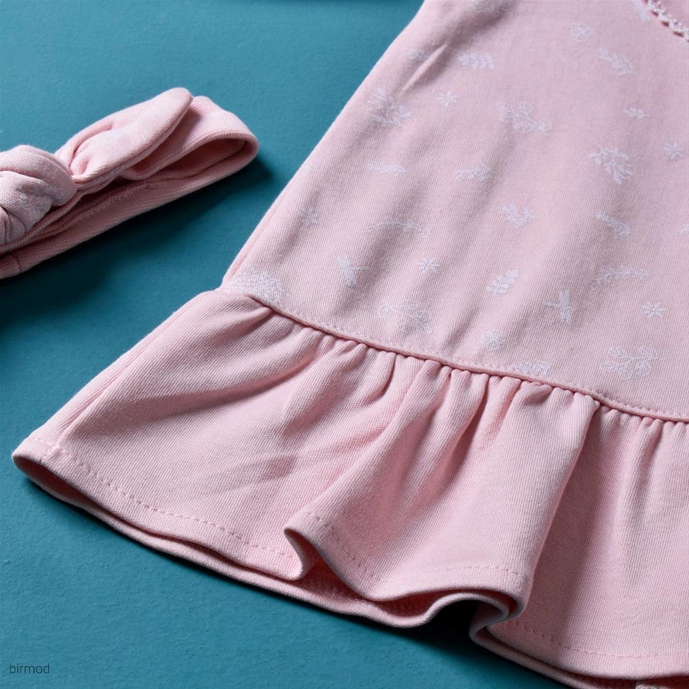AC23063 BEBEK ELBİSE TAKIM DRESS HEADBAND SET %100 Organic Cotto GOTS FLORAL PINK 17ویژگیهای محصول