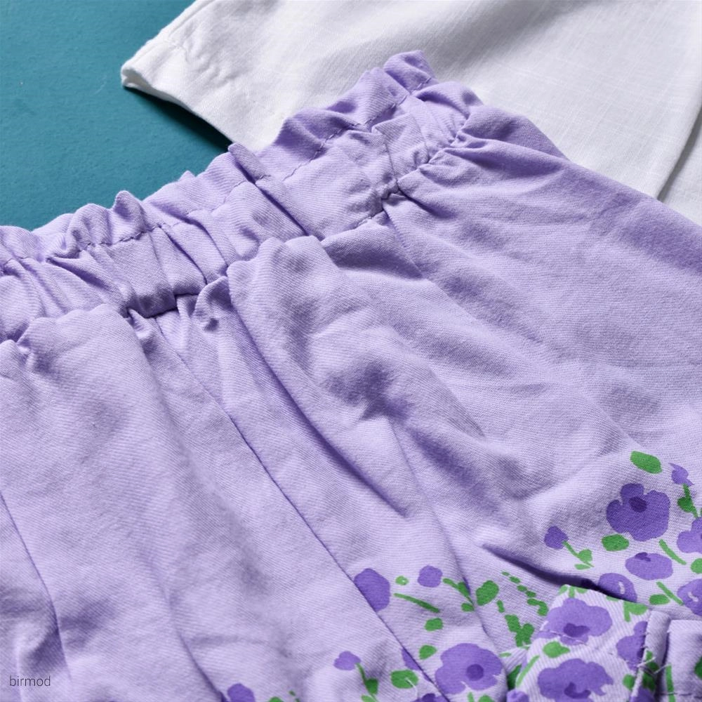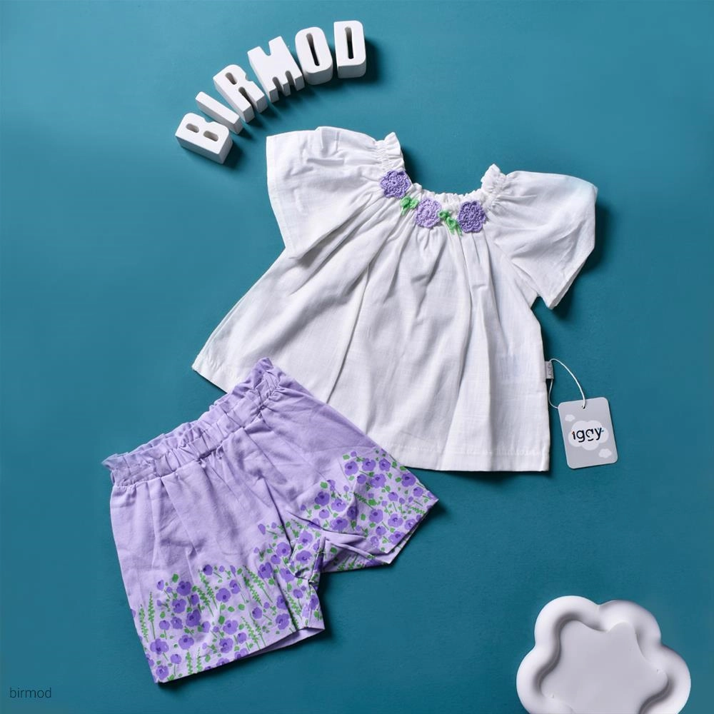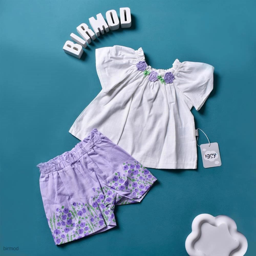 دو تیکه تابستانی دخترانه خنک گلدئزی و شرتک بنفش اورجینال ایگی ترکیه 5146