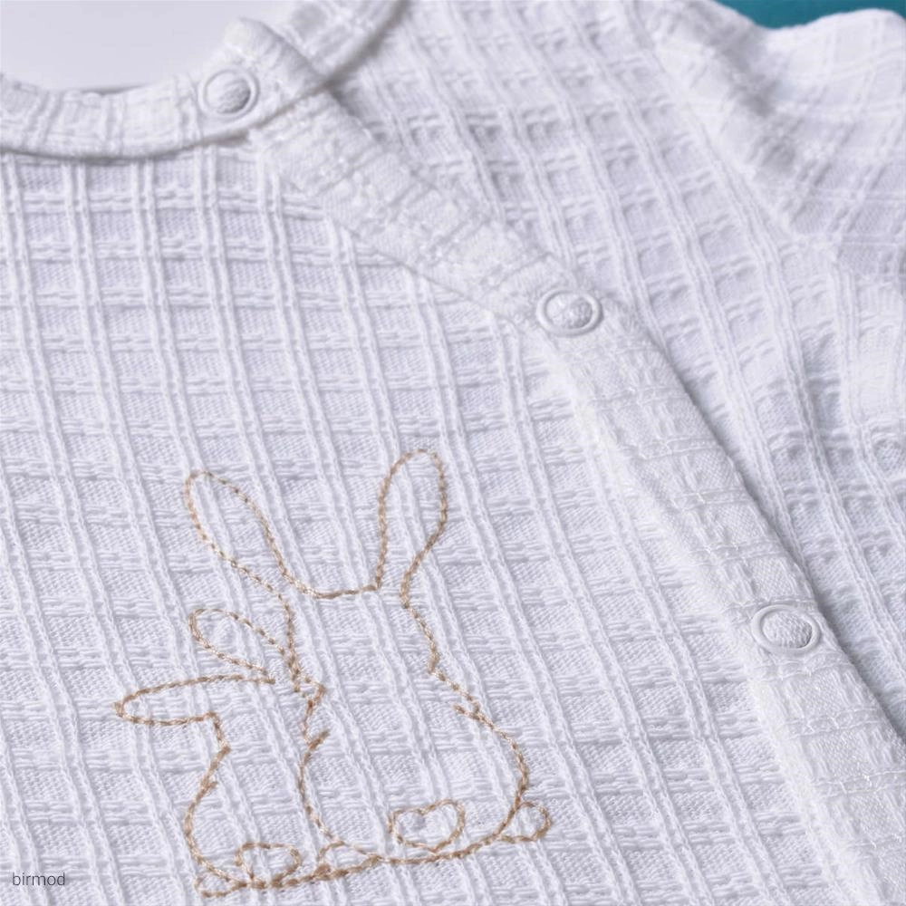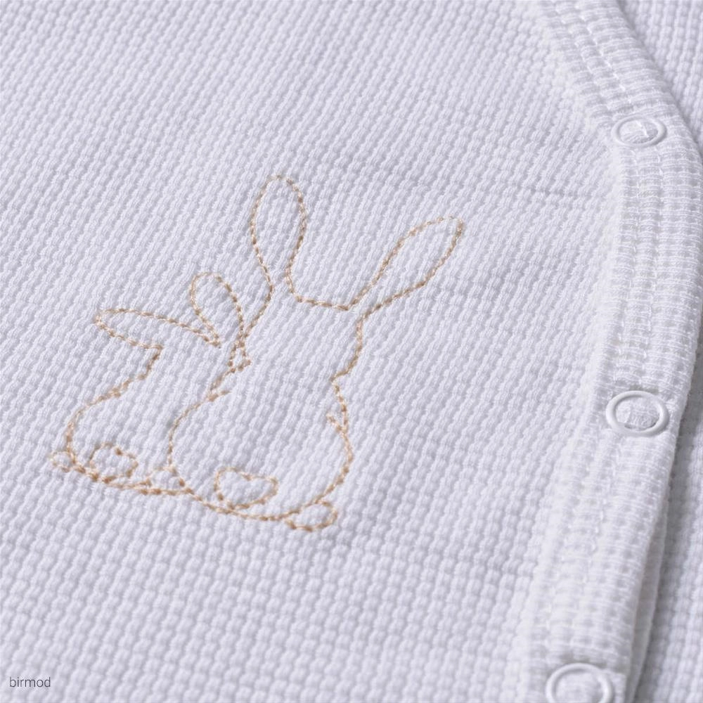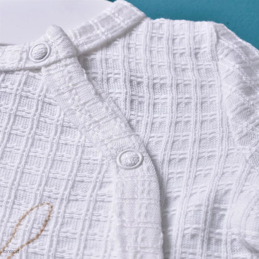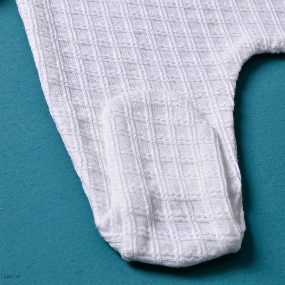 دکمههای جانبی: برای تسهیل در پوشاندن لباس و جلوگیری از فشار به بدن نوزاد، دکمهها به صورت جانبی قرار دارند.