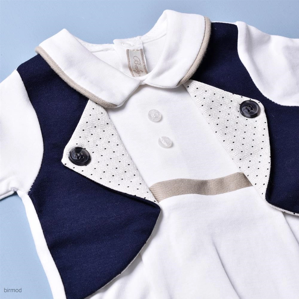 سرهم پسرانه مجلسی جلیقه دار نوزادی تا 6 ماه جورابدار تورجینال بی بی دولا ترکیه 15550