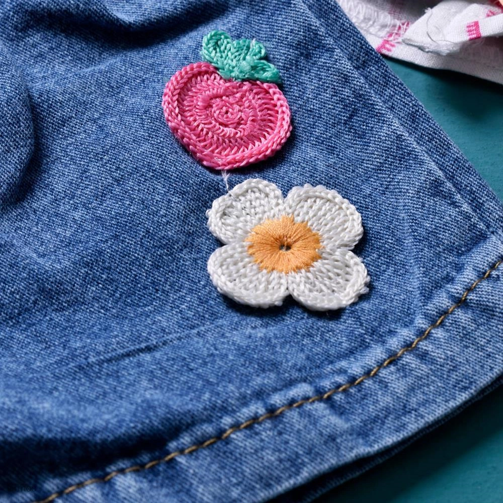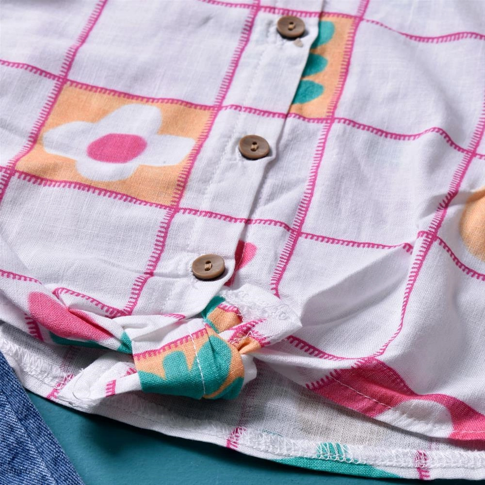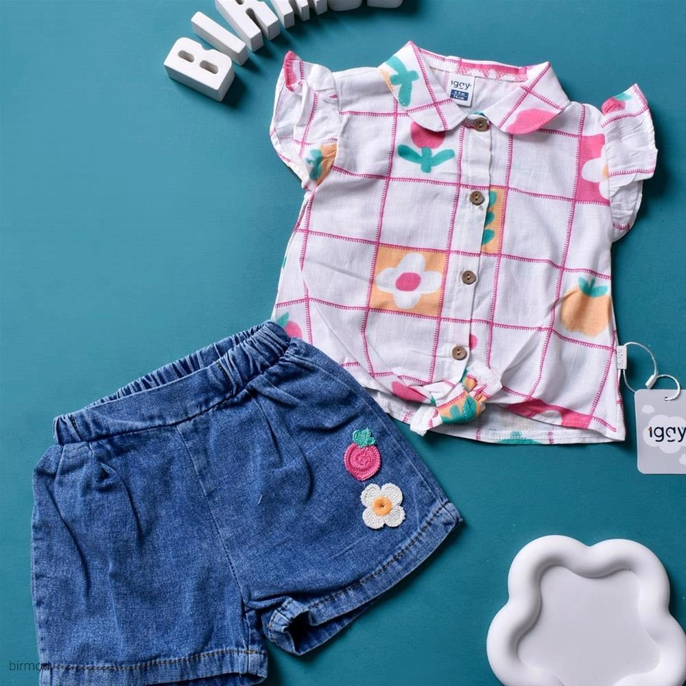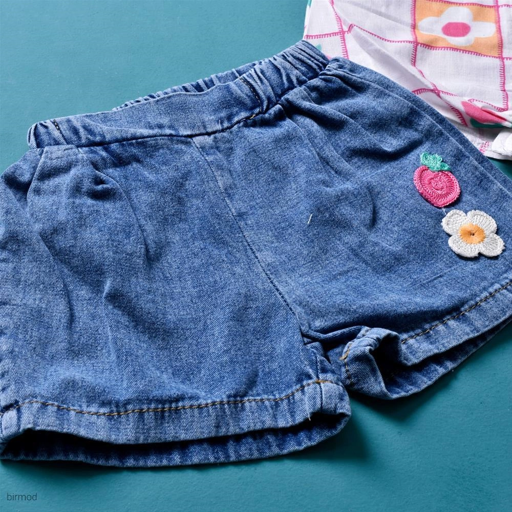 دو تیکه دخترانه تابستانی شرتک جین مدل گرهی 5160