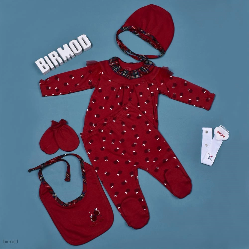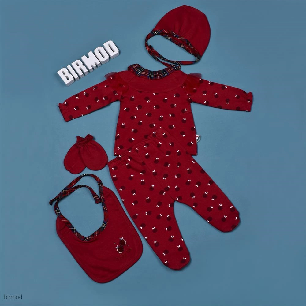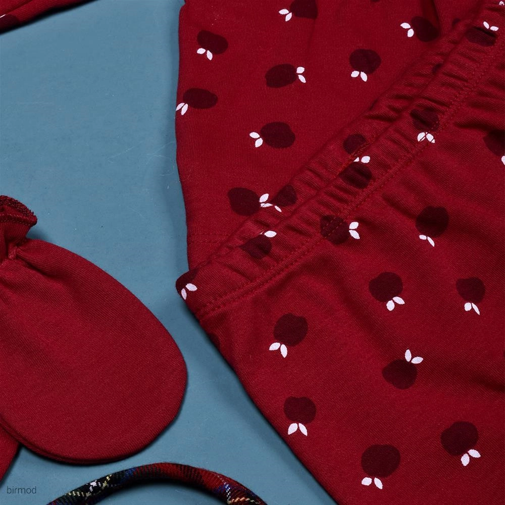ست نوزادی پنج تیکه قرمز یلدایی کریسمسی طرح انار کارامل اورجینال ترکیه