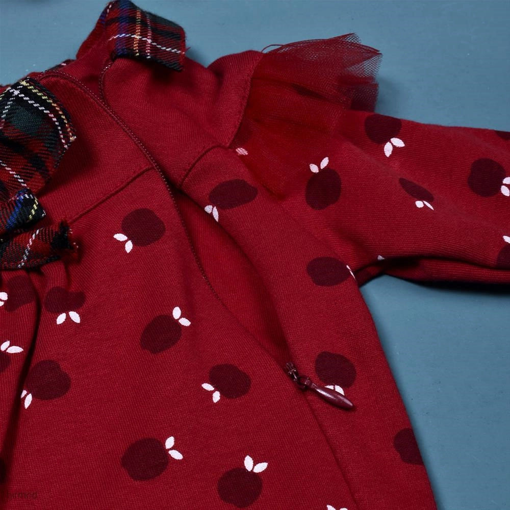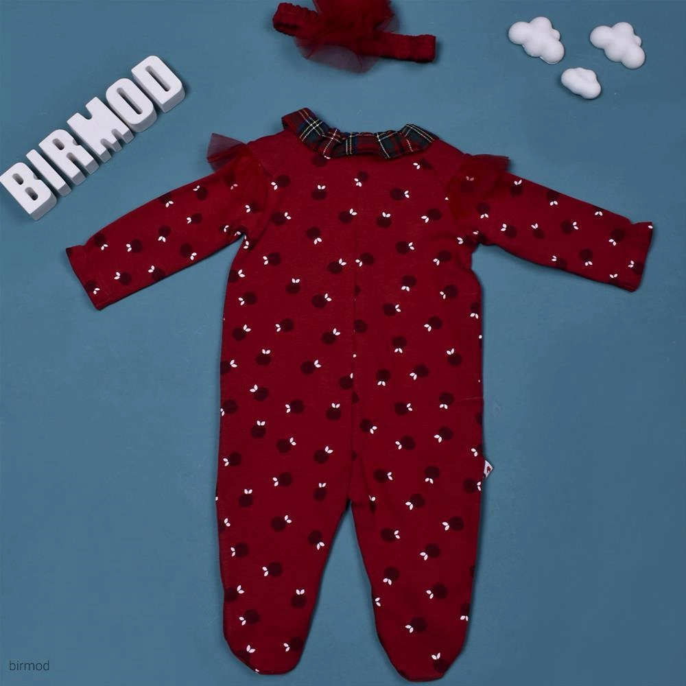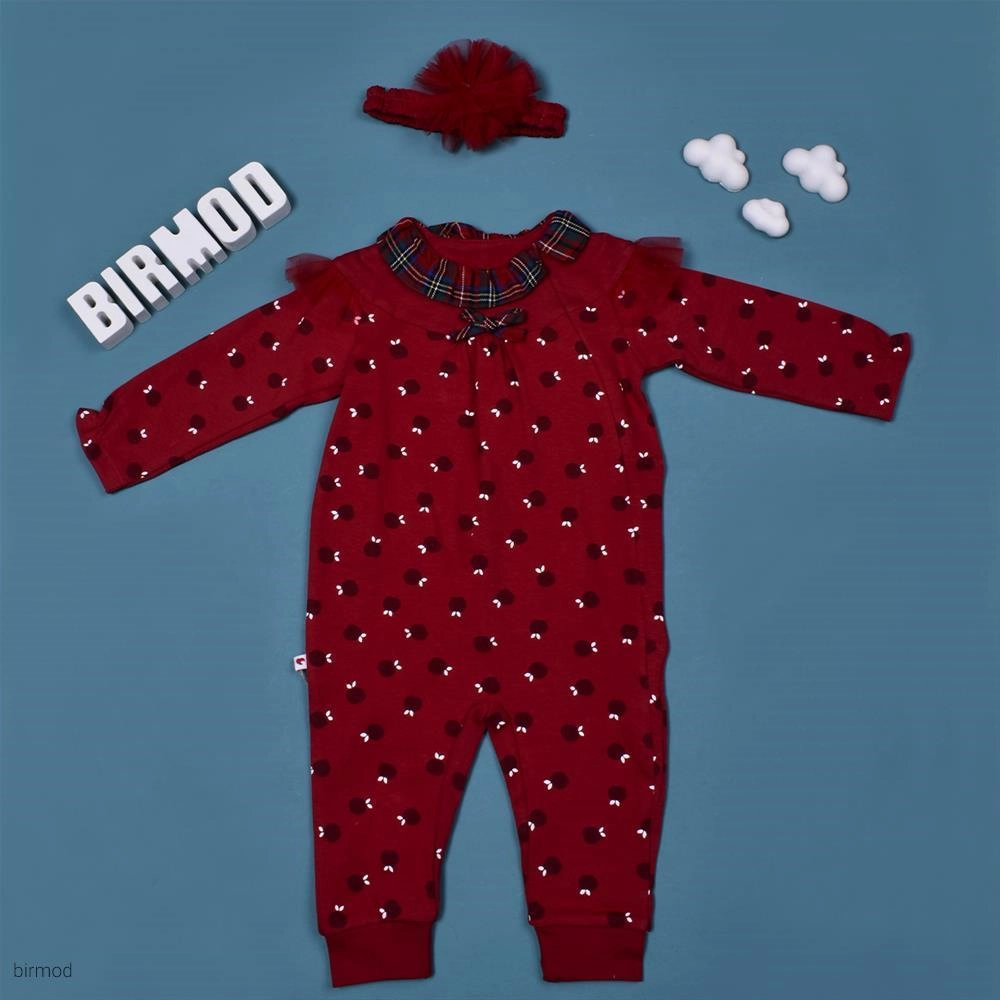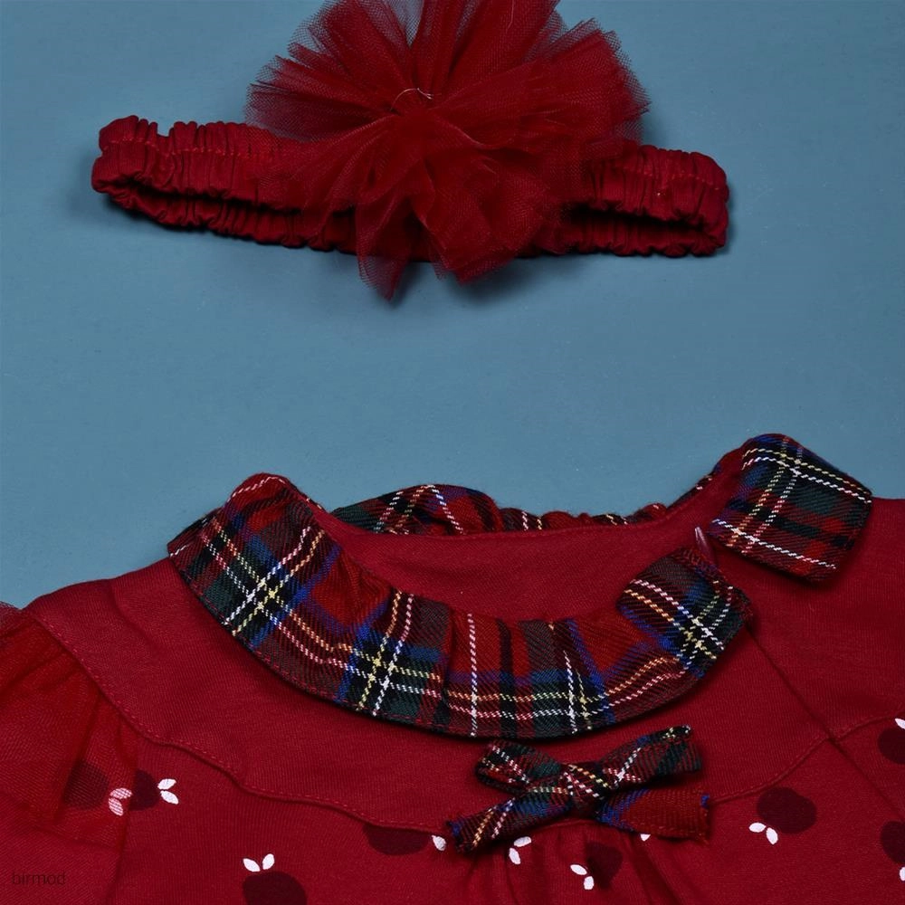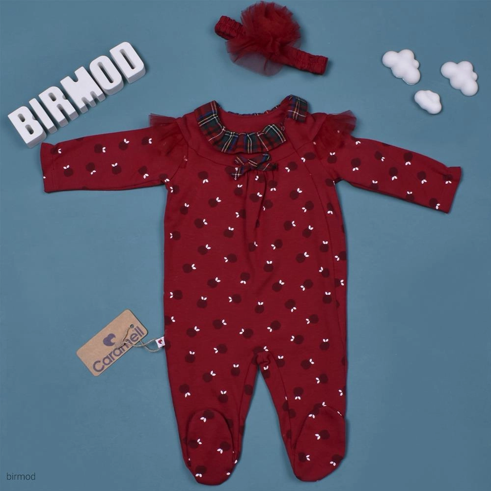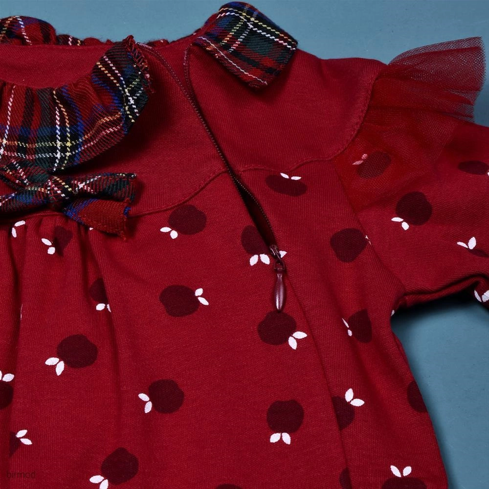 سرهم دخترانه قرمز طرح انار یلدایی کریسمسی کارامل اورجینال ترکیه